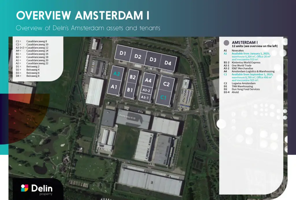 Delin Amsterdam I is situated on business park ‘Atlaspark’ part of the Port of Amsterdam area. Atlaspark is designated for large scale logistics companies offering multimodal connection