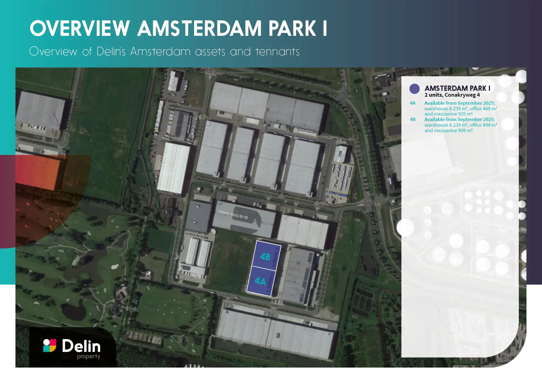 Delin Amsterdam Park I is situated on business park ‘Atlaspark’ part of the Port of Amsterdam area. Atlaspark is designated for large scale logistics companies offering multimodal connection possibilities via sea, air, rail, and road. As such the location is ideally located for both national and international distribution.